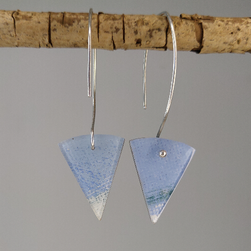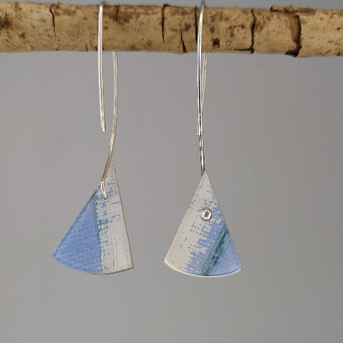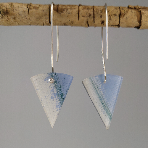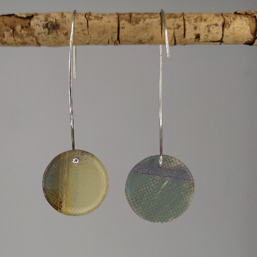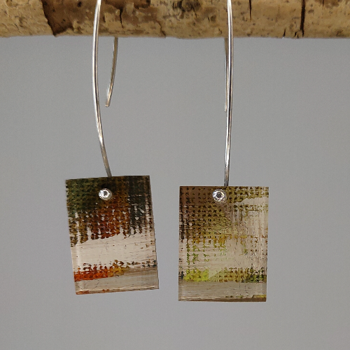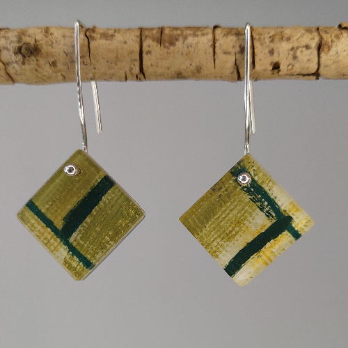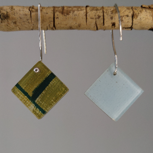 Voor de canvas collectie is gebruik gemaakt van een schilderij op hoogwaardig schilderdoek. Het schilderij is in stukken gesneden en in kristalheldere epoxyhars gegoten. De oorbellen/ stekers zijn afgewerkt in zilver. Alle sierraden zijn met de hand gemaakt. Hierdoor is elke oorbel uniek.