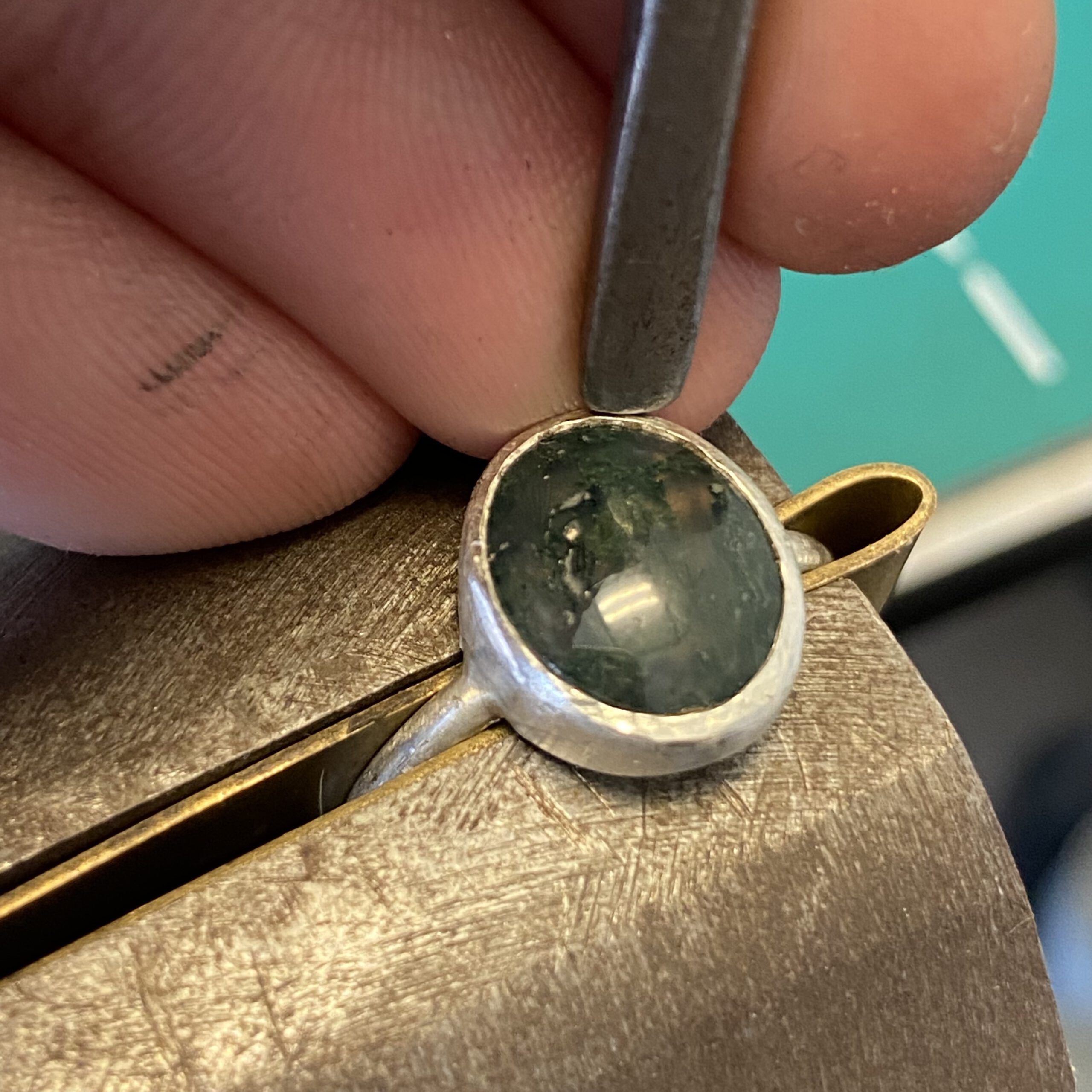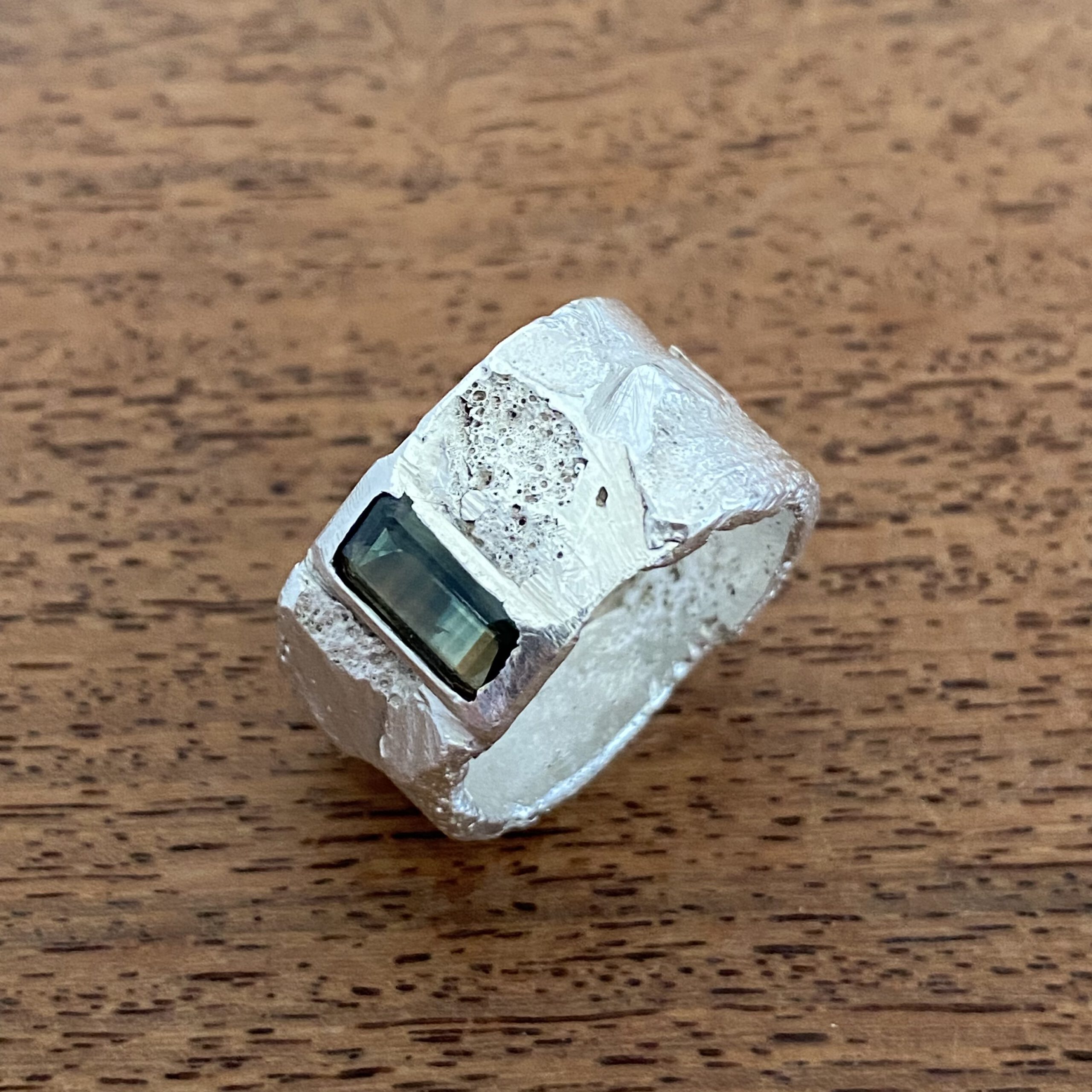 Saffierring zilver gegoten